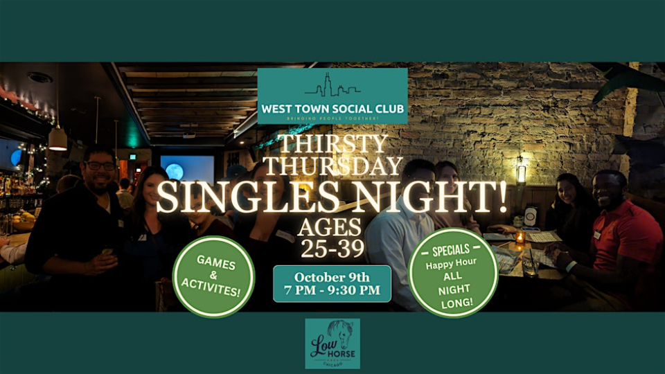 Unlike most singles events, Thirsty Thursday Singles Night is a chance for singles to get together in a casual, social setting without the pressure of trying to be matched by the end of the night. The goal of the evening is simply to have fun in making good conversation, regardless of romantic interests, with the hope of expanding social circles. That way, even if you don't make a special connection, you may find yourself some wingmen/wingwomen or someone who may eventually connect you with that special connection :)